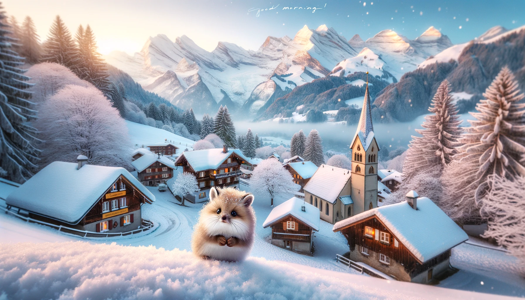 2024-01-16 2024-01-162024-06-07 a beautiful winter morning landscape from a mountain side village in Swiss, with the Alps mountains in the background